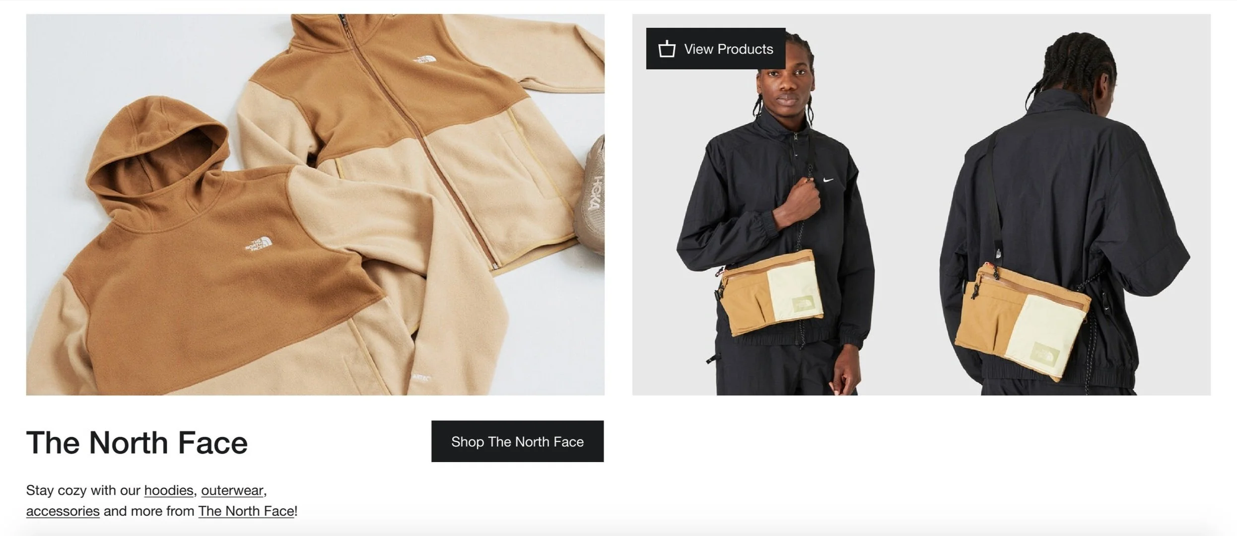 2-up brand specific section w/ brand specific images; functionality to view products displayed in image