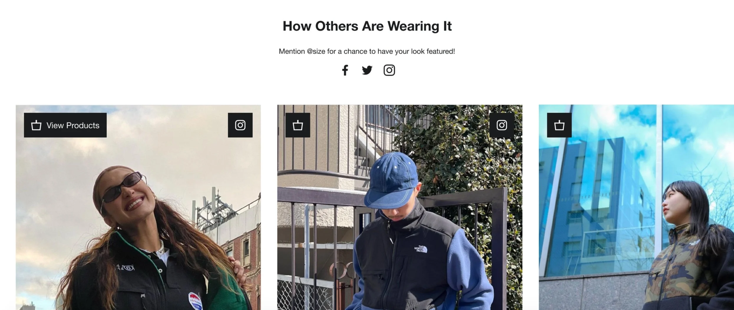 Social Media; increased social proof with the functionality of viewing products worn in images