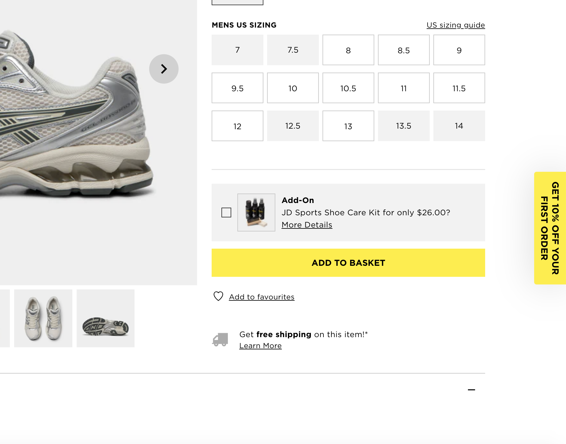 Shoe size selected w/ Add-on